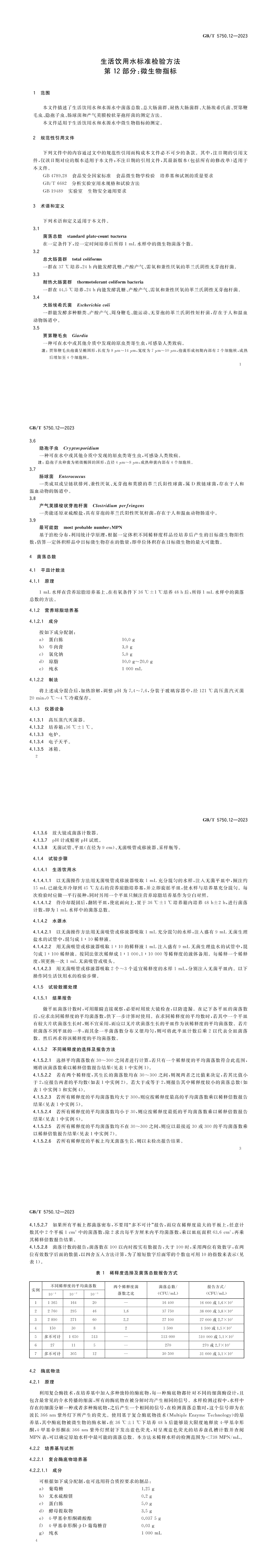 GB/T 5750.12-2023生活飲用水標(biāo)準(zhǔn)檢驗(yàn)方法第12 部分:微生物指標(biāo)